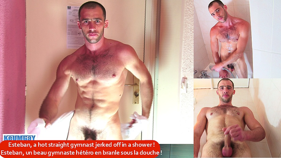 Esteban, un beau sportif de 24 ans mis à nu en branle sous la douche.